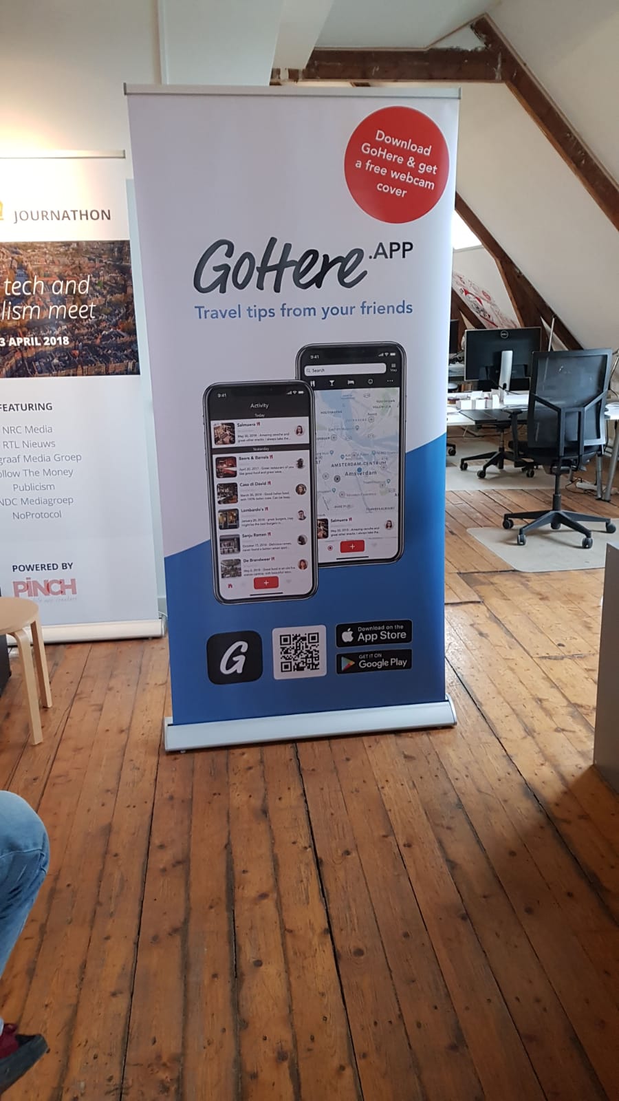 Om op beurzen neer te zetten is er een roll-up banner gemaakt aan de hand van mijn design is de banner vervolgens geprint op een doek van 1 bij 2 meter groot. Ook deze banner is in het verlengde van de design guidelines gemaakt.